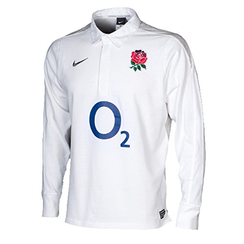 The new Nike England Supporters Home rugby shirt features an embroidered crest and is the official replica rugby shirt released for the 2010-2011 season. A shirt designed for the supporter with a tradtional collar and button neck. The O2 logo has been screen printed to the centre front.. Contrast graphic at shoulders and sleeves. The graphics have been inspired by the thorns on the RFU rose and have been administered to the side panels of the jersey with a subtle graduated sublimation print. Fabric: 100% Cotton. Machine washable. NIKE SIZE GUIDE: S - 34-36" M - 38-40" L - 42-44" XL - 46-48" 2XL - 50-52"